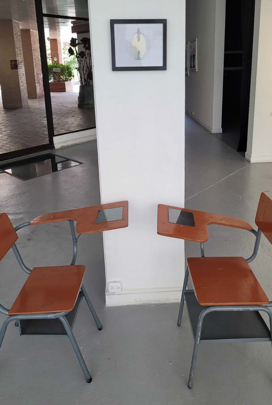 | Las dos piezas, hacen parte de una serie de hologramas instalados en pupitres de colegio enfrentados, y un cuadro de 22 x 27 cm en el muro. Estas, articulan arte y tecnología para generar una experiencia estética que reflexiona sobre la violencia, el olvido y las formas de resistencia y dignidad en el contexto colombiano y latinoamericano. Las instalaciones se centran en el uso de hologramas de volumen como medio principal, los cuales se integran en objetos cotidianos recuperados de escuelas (pupitres), que actúan como dispositivos simbólicos y portadores de narrativas históricas ocultas. Estos objetos cotidianos actúan como testigos mudos de una pedagogía que ha invisibilizado el conflicto, mientras que los hologramas revelan lo que se ha silenciado. |