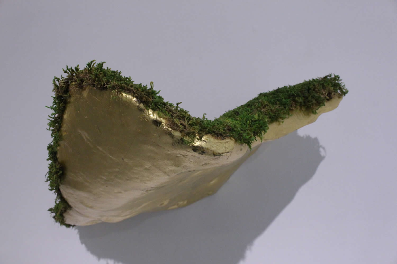 "El oro, comúnmente asociado al poder y a la acumulación, se convierte aquí en el soporte silencioso de lo que parece humilde: un manto de musgo, una parcela de tierra. Aqui, la dignidad se manifiesta en esta inversión de jerarquías, donde lo vivo prevalece sobre lo precioso, donde la fragilidad encuentra su fundamento en el valor más absoluto. |